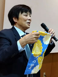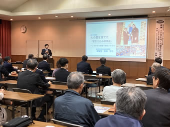 糸魚川支部は11月27日、秋季講演会をヒスイ王国館で開催しました。海洋高等学校相撲部総監督の田海哲也氏をお招きし、一般参加を含めて41人が講演に耳を傾けました。田海さんは海洋高校相撲部の日々の取り組みや練習、そして地域とのつながりの大切さに触れ、大の里をはじめとする同校出身力士が中学・高校と相撲に打ち込んだ日々をエピソードを交えて紹介されました。また、全国大会などで活躍する選手の強さの秘密として、「人間には差がなく、正しいことは継続することが大事であり、心が変われば態度が変わる」と述べ、人間として成長することの大切さを強調されました。また、監督は結果を出す覚悟が必要であり、監督の本気度が選手に熱量として伝わると話されました。