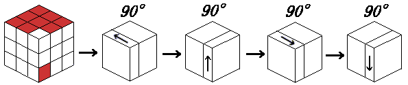 以下の4つの基本形を参照しながら、揃えようと思っている面の揃った部分を変化させないで、色を揃える方法を憶えてしまいましょう。すぐ憶えてしまいますよ。